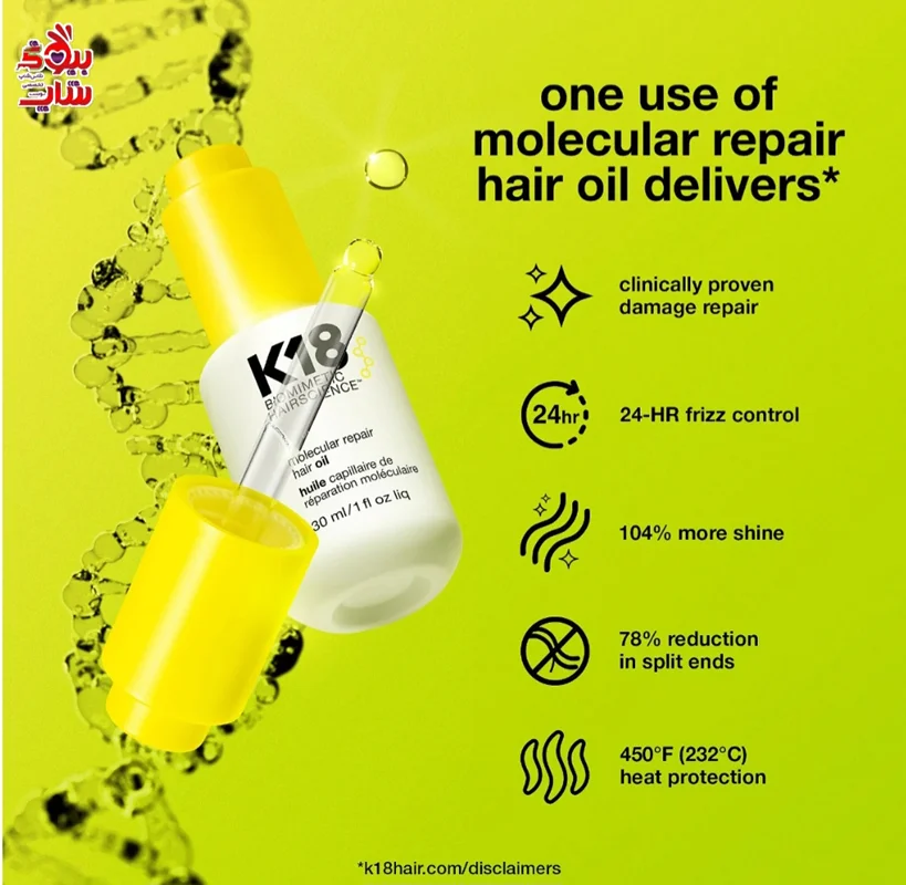 تجربهای نوین از ترمیم مو با روغن موی K18 حجم ۳۰ میل! این محصول اصل اروپایی با فناوری بیومیمتیک به عمق ساختار مو نفوذ کرده و آسیبها را به سرعت ترمیم میکند. موهای شما براق، نرم و احیا میشود. فرصت را از دست ندهید و زیبایی طبیعی موهایتان را بازگردانید! خرید کنید و تفاوت را حس کنید!