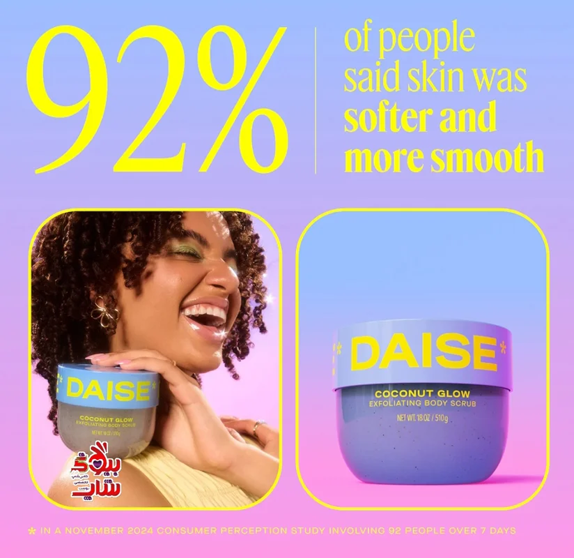 با اسکراب لایهبردار Daise Exfoliating Body Scrub Coconut Glow، پوست بدنتان را به نرمی و براقیت بینظیری برسانید! این محصول اصل اروپایی با عصاره نارگیل، لایهبرداری عمیق و مرطوبکنندگی را برای شما فراهم میکند. تجربهای لوکس و احساسی ابریشمین برای پوستی جوان و درخشان! ایدهآل برای داشتن پوستی نرم و جذاب. اکنون تهیه کنید و تفاوت را احساس کنید!با اسکراب بدن لایه بردار DAISE با رایحه نارگیل، پوستی درخشان داشته باشید. این فرمول لایه بردار و تجدید کننده، به آرامی پوست نرم و خوشبو را نمایان میکند، در حالی که رایحه گرمسیری نارگیل، شادی را به برنامه دوش یا حمام شما میآورد. این محصول از نظر پوستی آزمایش شده و با وعده پاکیزگی ما فرموله شده است و برای همه انواع پوست مناسب است. در شش رایحه سرگرم کننده و فوق العاده کلکسیونی موجود است: درخشش گیلاس، درخشش نارگیل، درخشش خربزه، درخشش آناناس، درخشش انار و درخشش وانیلی. این محصول را با شامپو بدن فومی DAISE و/یا بمبهای حمام DAISE برای یک برنامه حمام یا دوش بینظیر ترکیب کنید. برای داشتن DAISE خود آماده شوید!