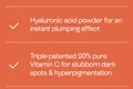 Our Chem-C" Technology blends triple-patented VitaminC and peptides to be firm and smooth, while20% pure L-Ascorbic acid fades dark spots and gives an even tone. Hyaluronic acid, ceramides, and pomegranate sterols plump, soothe,and strengthen for visibly lifted, radiant skin.