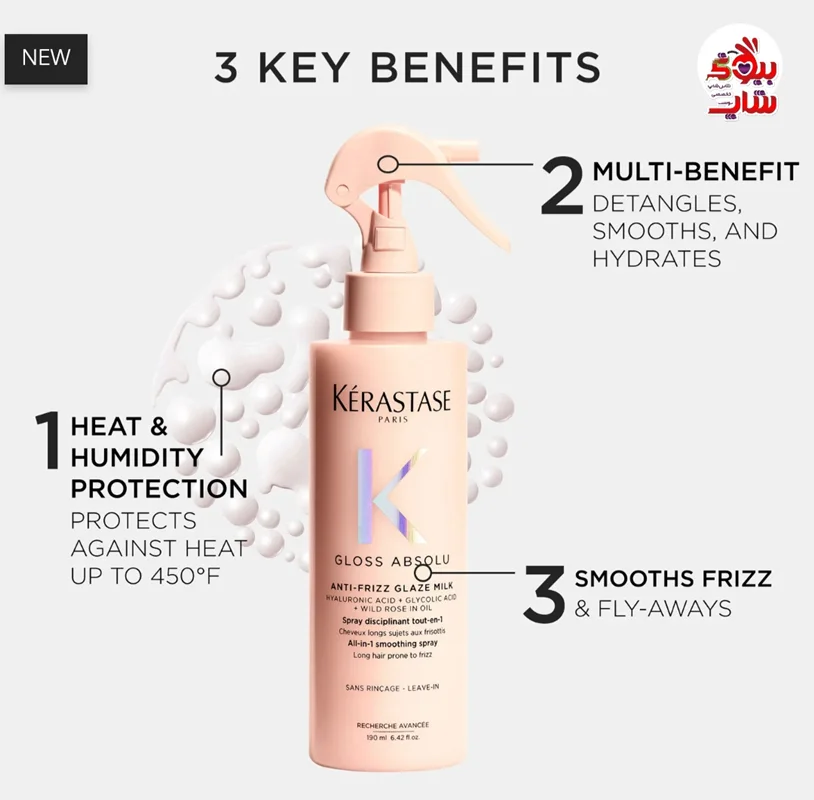 Anti-Frizz Glaze Milk By Kérastase is an all-in-1 smoothing spray for hair prone to frizz.