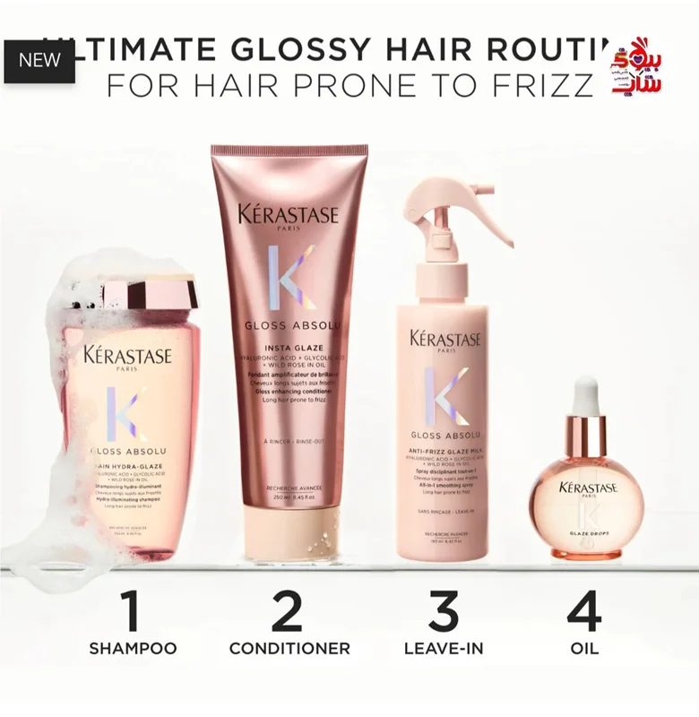 Start with the Bain Hydra-Glaze for ultimate shine. Continue with the care with Insta Glaze conditioner inally, style with leave-in Glaze Drops as the final gloss touch.