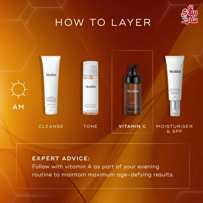 Defend against fine lines and achieve accelerated skin brightening with Medik8's C-Tetra Advanced (30mI).