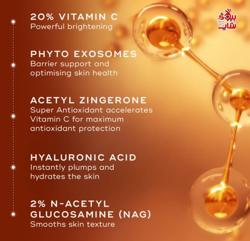 Powered by an intelligent ingredient complex, this staple combines stabilised 20 % vitamin C and phyto exosomes for controlled delivery SO there IS no barrier disruption to skin. What's more, it's also infused with omni- antioxidant acetyl zingerone O shield Skin from damaging free radicals, pollution, and daily environmental stressors. The result? Expect a high-performance vitamin C serum that works to leave your complexion smooth, hydrated and brighter.