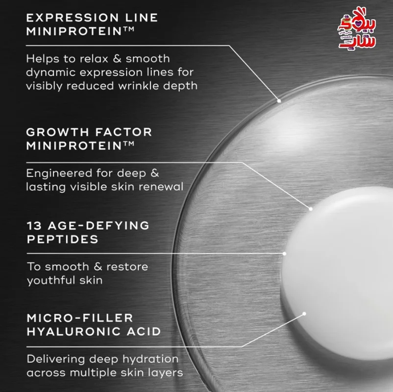 Formulated with the brand's biotechnology Dual MiniProteins, thiS serum works tO nstantly minimise the look of expression lines and over time for more deeper-set wrinkle reduction. How? Well, these ultra- small, advanced proteins not only smooth the skin, but also boosts elasticity for a more ifted and firmer appearance. What's more, these benefits are enhanced by a 30% multi- K peptide complex alongside micro- encapsulated hyaluronic acid for intense, long-lasting hydration. Get ready for results