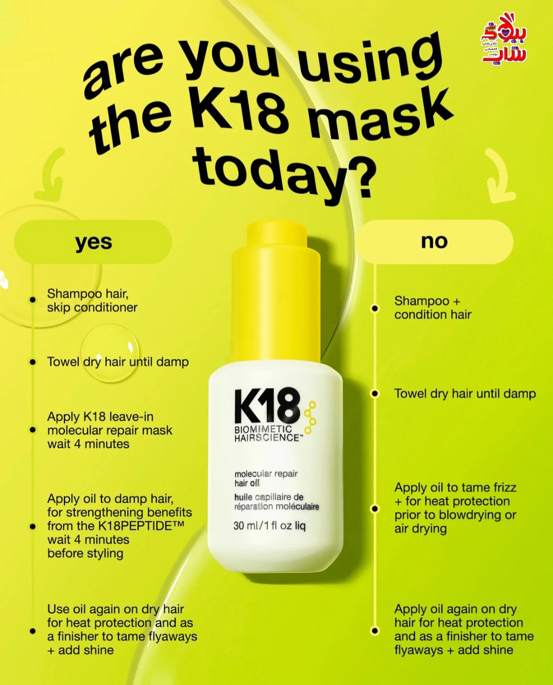 روغن موی ترمیم کننده k18 BIOMIMETIC HAIRSCIENCE حجم ۳۰میل اصل اروپایی Molecular Repair Hair Oil - K18 Biomimetic Hairscience