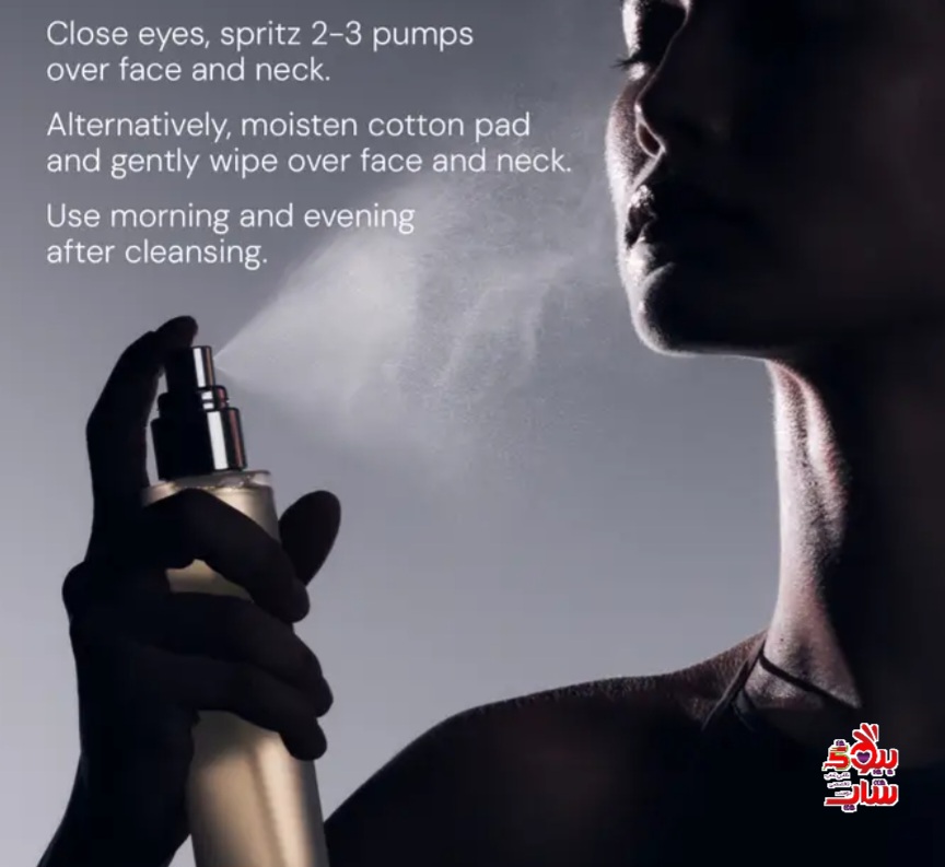 Step 2: Alternatively close eyes, spritz 2-3 pumps over the face.