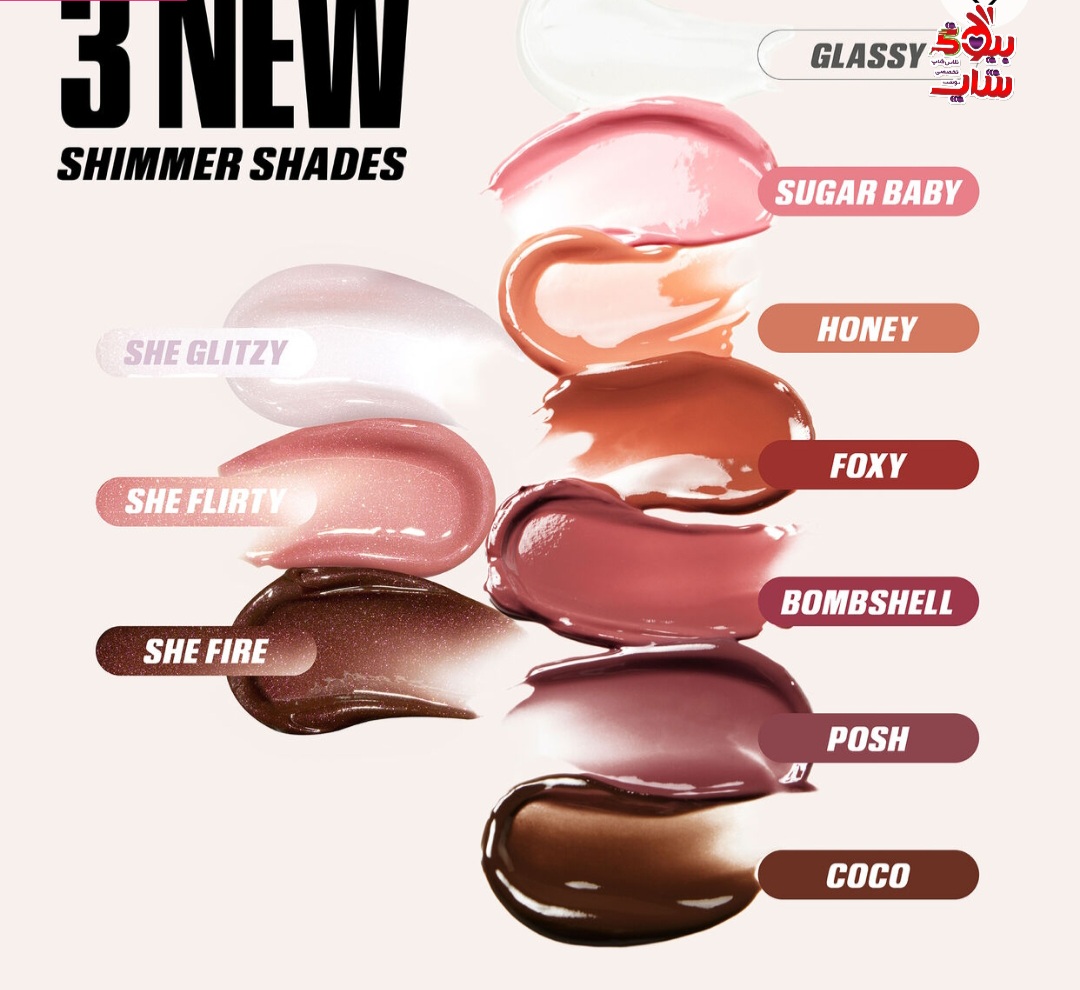 • She Flirty - a sheer rosy pink gloss • She Glitzy - a sheer clear iridescent gloss • She Fire - a sheer deep brown gloss