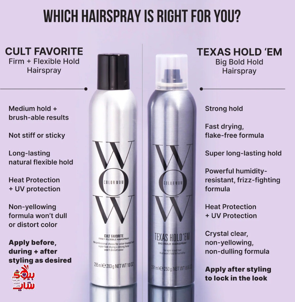 چرا شگفتانگیز استفرمولی با ماندگاری کمتر، خشک شدن سریع و بدون پوسته شدناسپری موی با نگهدارندگی فوق العاده، ۸۲٪ حالت مو را در رطوبت بالا حفظ میکند*تا ۵۰٪ الکل کمتری نسبت به اسپریهای رایج رسوب میدهد**۲ نوع محافظت در برابر حرارت + محافظت در برابر اشعه ماوراء بنفش.،یادداشتهایی از آزمایشگاه کالر واوفرمول جدید و رادیکال اسپری موی نگهدارنده قویاستفاده منحصر به فرد از "flash-fixate" باعث میشود موها کمتر خیس شوند و تا 50٪ الکل کمتری در آنها باقی بماند.فرمول کاهش یافته "محکم اما لطیف" با pH کمتر، با مو ملایمتر است.فرمول بدون پوسته پوسته شدن، به راحتی شانه میشود.به دنبال بهترین اسپری مویی هستید که حالت دهندگی فوقالعاده قوی و بینظیری داشته باشد و موها را بدون وز نگه دارد؟با تگزاس هولدم، یک اسپری موی پیشرفته و با عملکرد بالا از آزمایشگاه داخلی کالر واو، آشنا شوید.این اسپری قدرتمند که با فناوری پیشرفته و مواد اولیه مرغوب مهندسی شده است، تضمینی مطمئن برای جلوگیری از تا شدن مدلهای پرحجم، جلوگیری از افتادن مدلهای باز و بسته و جلوگیری از افتادگی فرها است