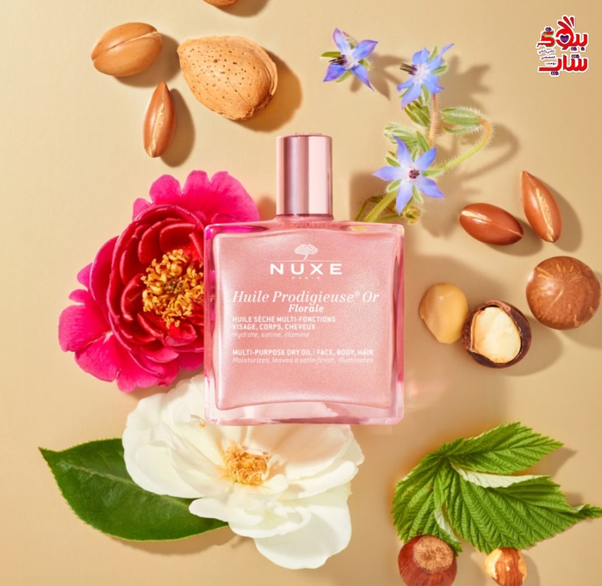 An accessory like no other. the NUXE Huile Prodiaieuse Floral Gold Shimmer Multi- Purpose Dry Oil (50ml) works like jewellery for your locks and your limbs