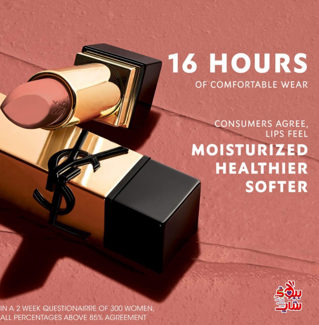 Clinical Results: In a consumer test with 300 women using the Rouge Pur Couture Pure Color-In-Care Satin Lipstick, results showed: -16 hours of protection and comfort feel -97% Formula glides effortlessly on lips -96% Satin formula feels soft on lips -87% Lips feel moisturized -85% Lips look healthier