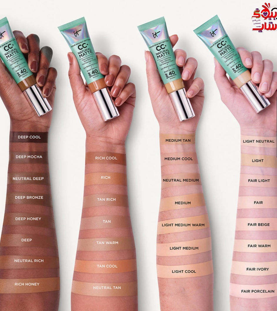 کرم پودر مات طبیعی CC+ با SPF 40، محصولی شماره ۱ در زمینه لوازم آرایش در سال ۲۰۲۴*، کرم پودری با پوشش کامل، کاهش دهنده درخشندگی و اصلاح کننده رنگ پوست، سرم متعادل کننده پوست و ضد آفتاب با طیف گسترده است.