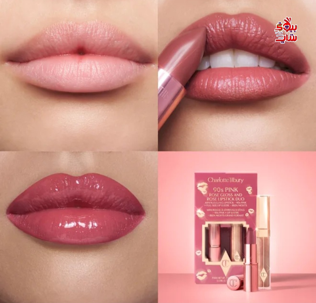 ست رژ لب و لیپ گلاس شارلوت تیلبری رنگ 90s pink اورجینال CHARLOTTE TILBURY GLOSS & LIPSTICK DUO 90S PINK