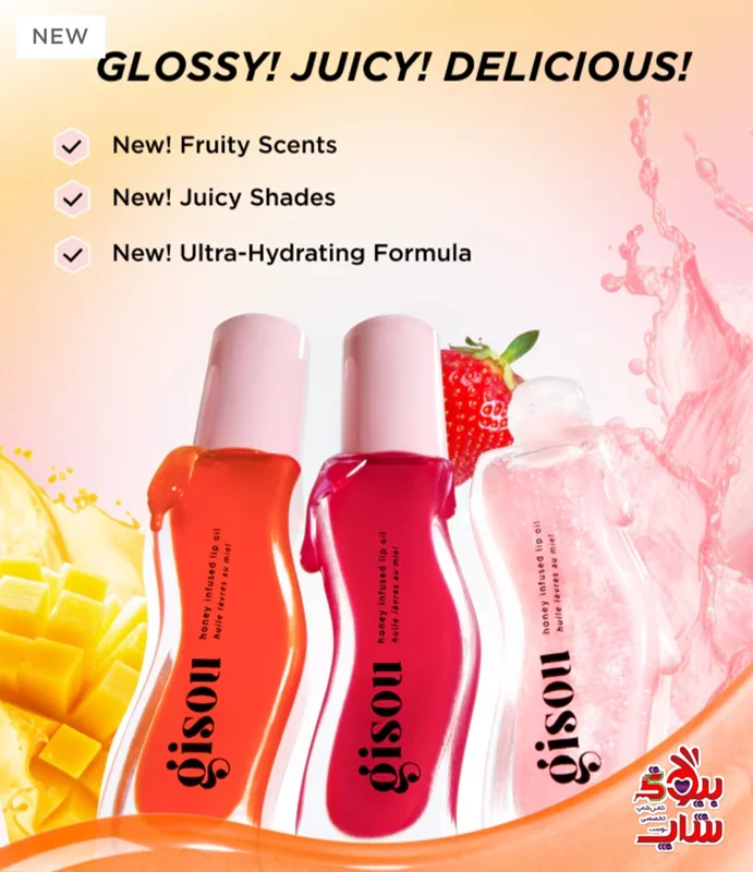 روغن لب عسل گیسو رنگ گلدن شیمر گلو با طعم عسل فولسایز اصل اروپایی GISOU New: Honey Infused Lip Oil Golden Shimmer Glow