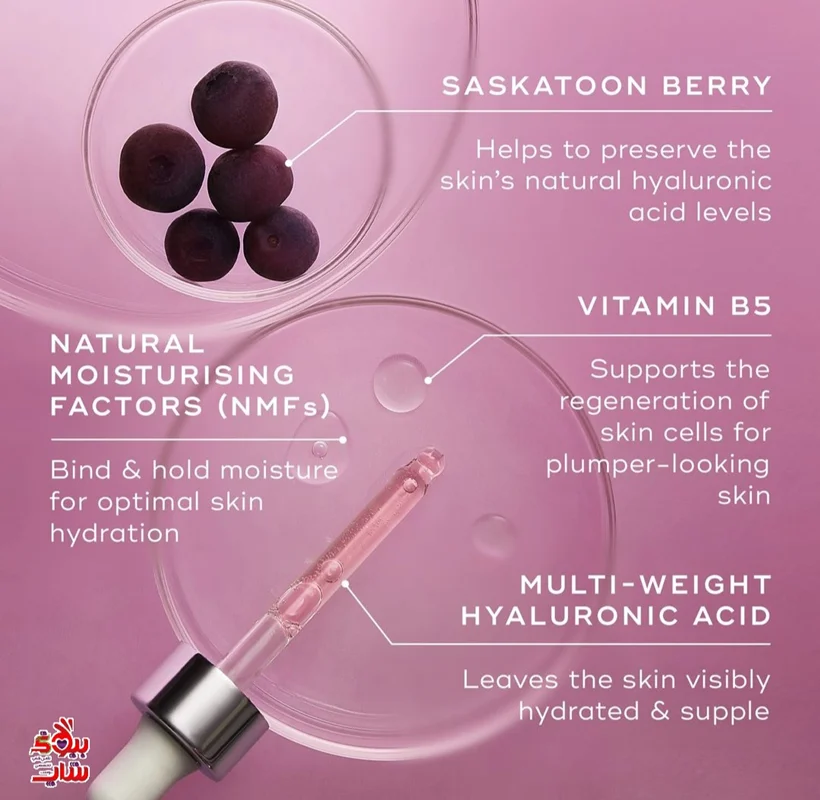 The addition of antioxidant powerhouse, saskatoon berry, works to fight off the dehydrating and ageing effects of free radicals as well as inhibiting the enzyme which breaks down excess hyaluronic acid in the skin This leaves the upper layers overflowing with hyaluronic acid for an ultimate plumped up, youthful-looking complexion.