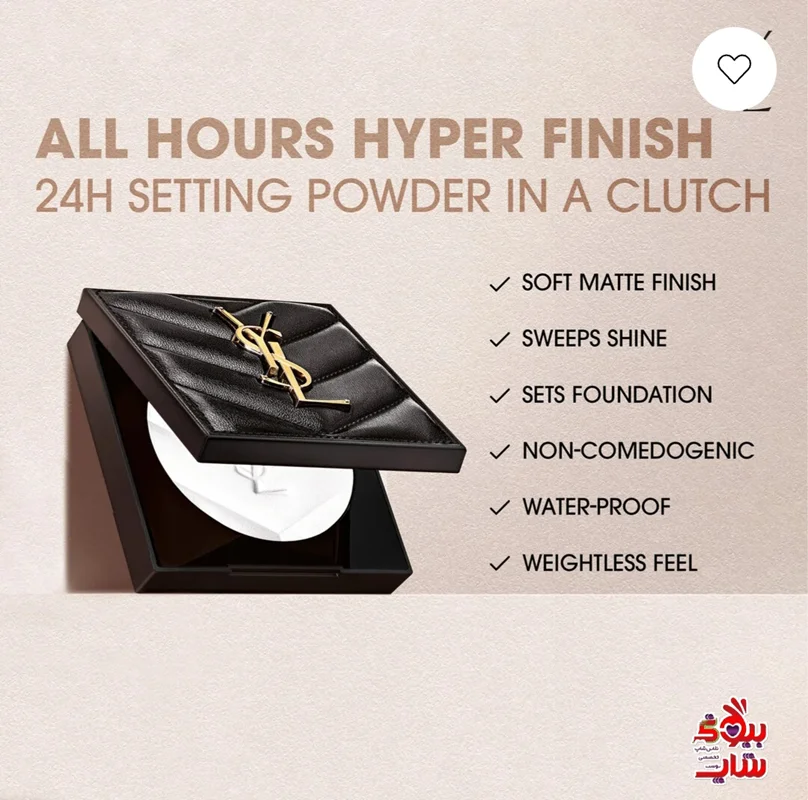 پنکک ایوسن لورن شماره 2 رنگ مدیوم فولسایز اصل اروپایی YVESSINTLAURENT ALL HOURS HYPER FINISH SETTING POWDER SHADE:2 medium