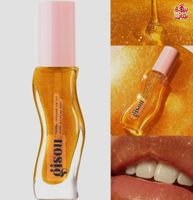 روغن لب گیسو رنگ Golden Gold با طعم عسل فولسایز اصل اروپایی Gisou Honey Infused Lip Oil Honey Gold