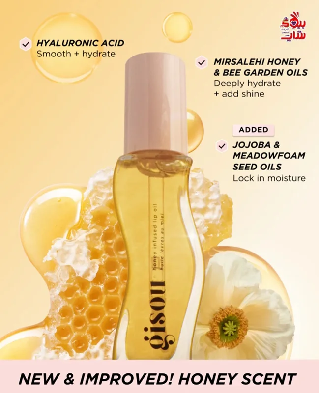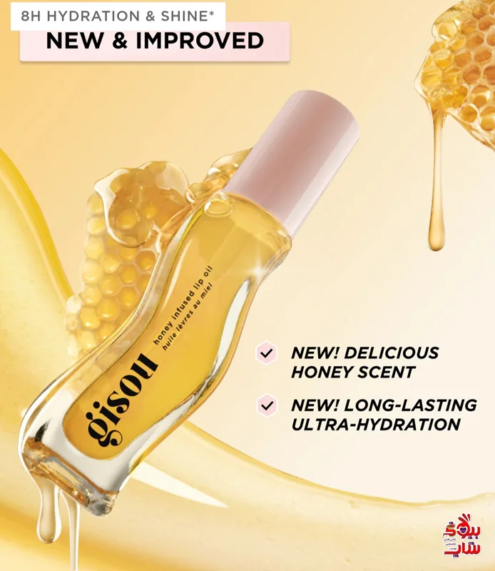 روغن لب عسل گیسو رنگ گلدن شیمر گلو با طعم عسل فولسایز اصل اروپایی GISOU New: Honey Infused Lip Oil Golden Shimmer Glow